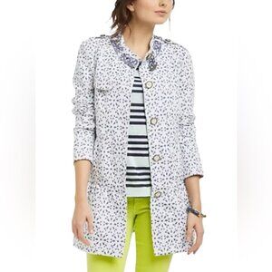 Anthropologie Elevenses NEW Eyelet Lace Trench Coat Jacket Cotton Lightweight Preppy