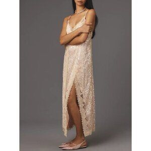 Anthropologie En Elly Sleeveless V-Neck Lace Sequin Slip Midi Dress S