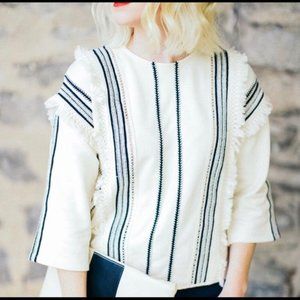 Anthropologie Eri + Ali fringe stripe sweater top, Size Medium