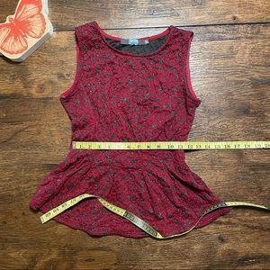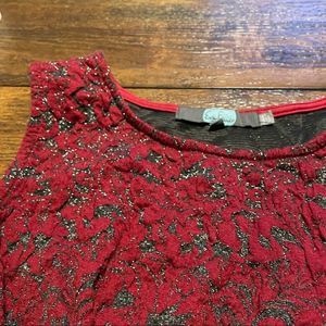 This adorable Anthropologie piece is the perfect layering item for under jackets, cardigans, and more! Featuring a peplum silhouette, with a red brocade pattern with some glitter to it. Can be dressed up for a night out or down for work, super versatile! In excellent gently used condition (10/10) with no obvious signs of wear or damage.