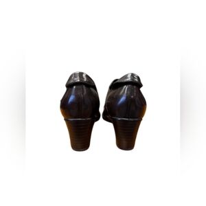 Moda T.moro dark brown leather slip on false button closure chunky heel stretchy side elastic