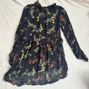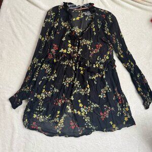 Anthropologie Floral Jamison Ruffles Flowy Blouse Whimsy Goth Tunic Top Boho M