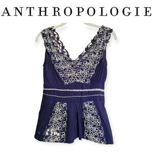 Anthropologie Floreat delivers timeless style with this Y2K navy dual-layer tank top, crafted from 100% cotton lace. Ideal for a chic, breathable summer look.