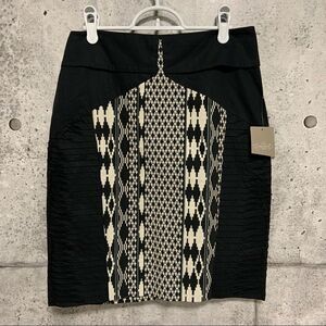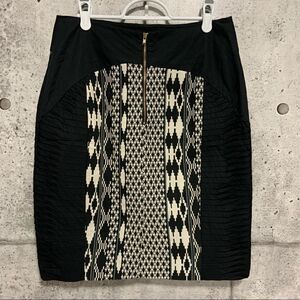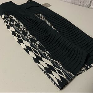 🆕 Anthropologie Floreat Pintucked Arpeggio Skirt in Black Motif Aztec