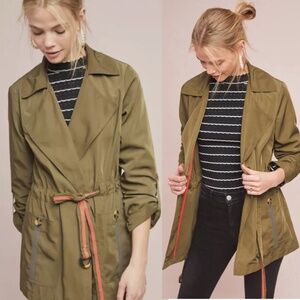 Anthropologie Gisborne Obi Trench Anorak Jacket Olive Green Size XS