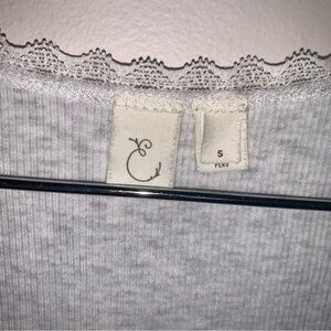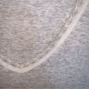 Anthropologie Gray Lace V-Neck Short Sleeve T-Shirt S