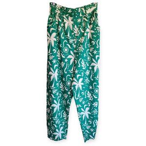Anthropologie Green/White Palm Print Barrel Pants S/M - Corey Lynn Calter