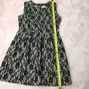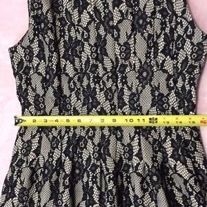 In good used condition flare dress with lace overlay .. beautiful Anthropologie dress.. armpit to armpit approximately 17inches and 35 inches length