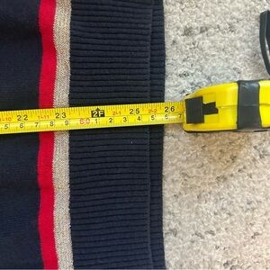 Anthropologie Karen Walker “Hi There” bow gold red and navy sweater L in good condition with light wear. Very cute!!