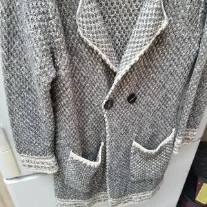 Anthropologie HWR Chunky Knit Long Cardigan Pockets Grey S