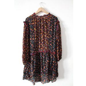Anthropologie Helene Tunic Dress / Small / Black Floral Sheer Flowy