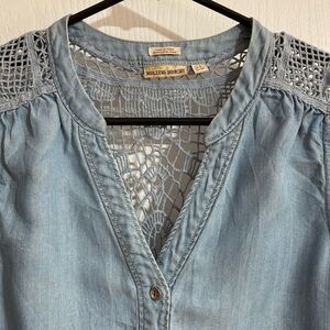 Anthropologie Holding Horses Chambray Crochet Buttoned Sleeveless Blue Top Size4