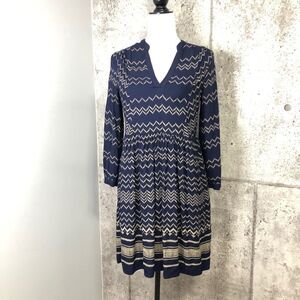 Excellent condition. Beautiful chevron pattern, easy care rayon dress with flattering pleating. Side pockets.