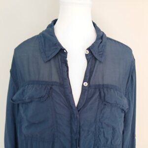 Anthropologie Holding Horses Oversized Button Up Semi Sheer Tunic Navy Large