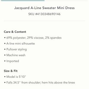Anthropologie Jacquard A-Line Knitted Mini Dress Size L.