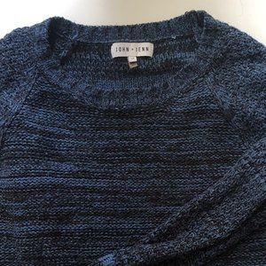 Anthro John + Jenn blue/black marled knit sweater. Good used condition with some mild pilling throughout.