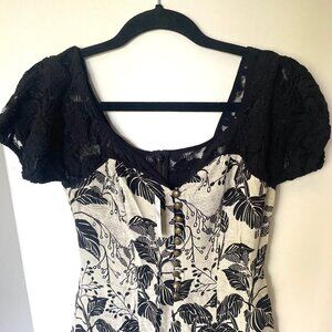 Anthropologie Jumpsuit Wide Leg Women 0 Crop Leaf Floral Black Lace Short Sleeve