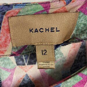 Anthropologie Kachel Diamond Scope Silk Shift Dress in Women's Size 12. Short sleeves. Crew neck. Super comfortable but extremely stunning. A great staple piece that can be worn year round for any occasion. Ombre geometric print. Zip closure at back. Unlined. Excellent pre-loved condition. No visible flaws.