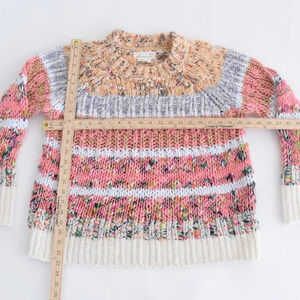Anthropologie Kahlo Striped Pink & Cream Chunky Knit Crewneck Sweater S