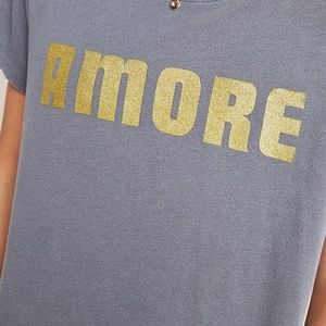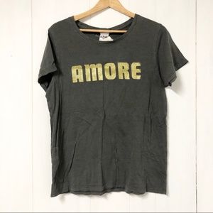 Anthropologie LETLUV Amore Gold Font Grey Tee NWT