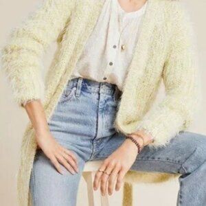 Anthropologie Larkin Shimmer open Cardigan Sweater eyelash yellow