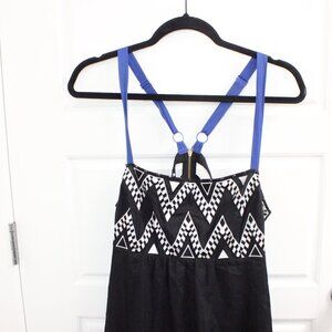 Anthropologie Leifnotes Dress Size 14 Black Blue White Sheath Empire Waist Midi