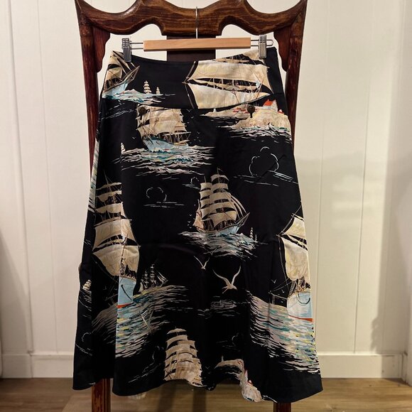 Anthropologie Leifnotes Rare Ship Print Skirt, size 8
