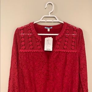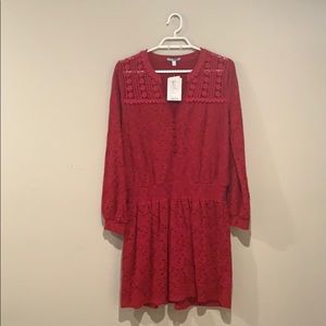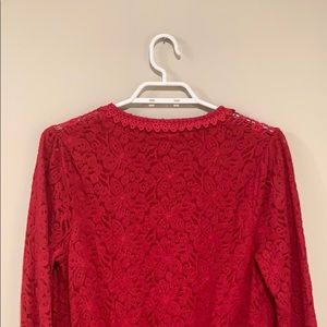 🆕 Anthropologie Leifnotes Red Lace Long Sleeved Dress - Women’s Size Medium