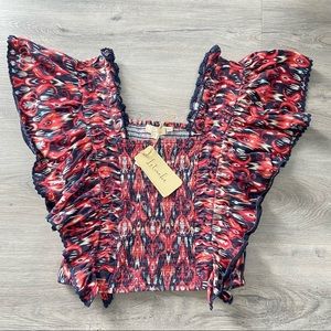 Anthropologie Let Me Be Smocked Crop Top in Red/orange and Navy NWT- Sz S, M & L