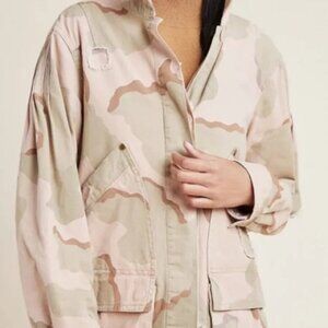 Anthropologie Lida Pink Camo Utility Jacket Size Medium Camouflage Coat Military