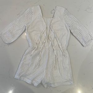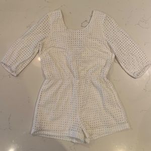 Anthropologie Lilka Women's White Eyelet Bow Back 3/4 Sleeve Romper