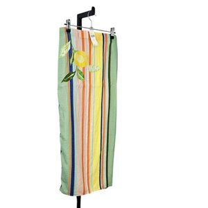 Anthropologie Linen Blend Striped Maxi Cover Up Skirt Size XS Side Slit Long NWT