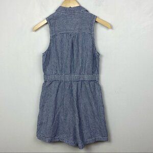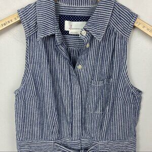 Anthropologie Linen Blue Striped Romper Tie Waist Size 0 Bohemian Playsuit Boho