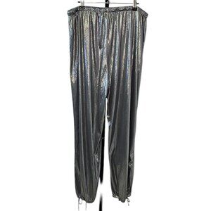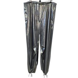 Anthropologie Liquid Shine High Rise Tie Waist Parachute Pants Silver Size Large