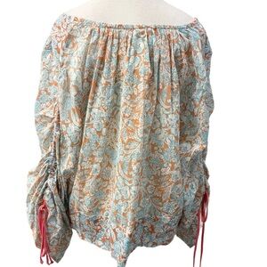 Anthropologie Long Sleeve Peasant Blouse in Blue & Tan Size Small