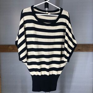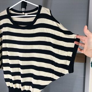 ANTHROPOLOGIE MOTH Navy Blue Cream Stripe Batwing Dolman Short Sleeve Sweater Sz XS