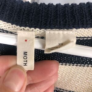 Anthropologie MOTH Blue Cream Stripe Batwing Short Sleeve Knit Sweater Sz XS
