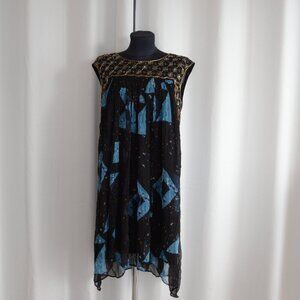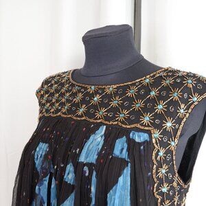 Gorgeous beaded swing dress from Anthro brand, Moulinette Souers. Stunning beaded accents and a gorgeous flowing fabric.