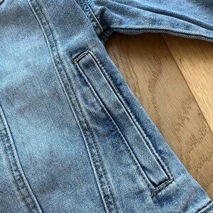 Light wash denim, lightweight. Very cute with wide peter pan collar. Has two side pockets. Size XS.