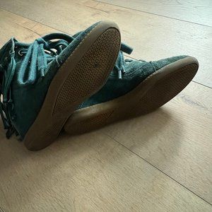 Anthropologie Madison Harding Moccasin Suede Fringe Wedge HIgh Top Sneakers