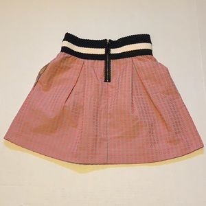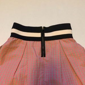 EUC Anthropologie Maeve pink, black, and white pleated skater skirt with back zipper and functional pockets in women’s size small (S).