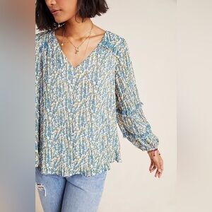 Anthropologie Maeve Avery Pleated Peasant Blouse , sz : small