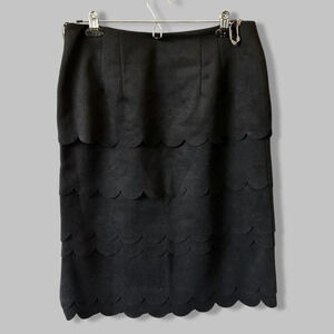 Anthropologie Maeve Black Scallop Tiered Layer Wool Blend Midi Skirt