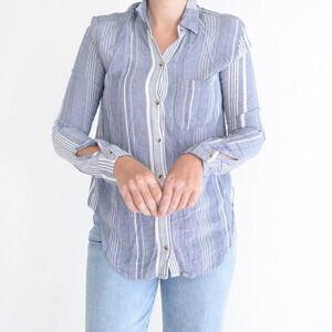 Anthropologie Maeve Blue And White Stripe Button Down Blouse Shirt XS