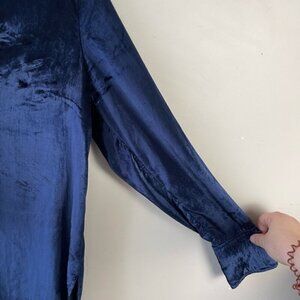 Anthropologie Maeve Blue Velvet Tie-Neck Button-down Tunic Sz US 2 Elegant