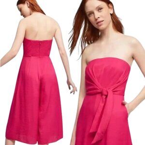 The Anthropologie Maeve Brin Jumpsuit is a bold and elegant one-piece featuring a strapless neckline, wide-leg silhouette, and a flattering self-tie sash at the waist. Crafted in a vibrant pink hue, this jumpsuit is both playful and sophisticated—ideal for summer events, brunches, weddings, or evenings out. Its polished yet easy-to-wear design ensures comfort while making a standout fashion statement.