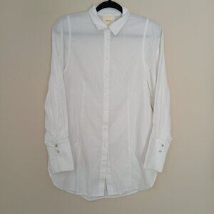 Anthropologie Maeve Button Down Blouse Crystal Button Cuff Detail White Size 6