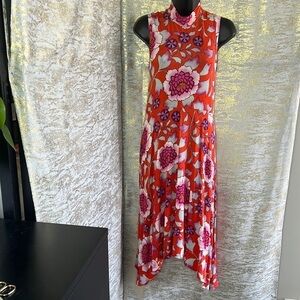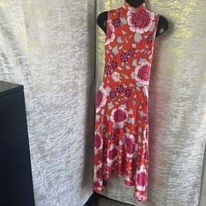 Anthropologie Maeve Cleary Bright Pink Floral Sleeveless Dress Size X-SMALL