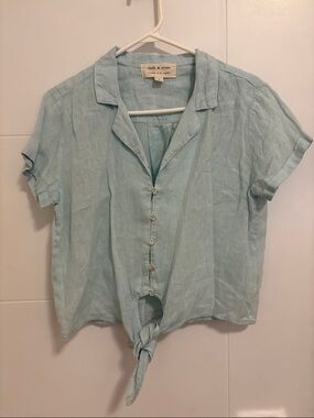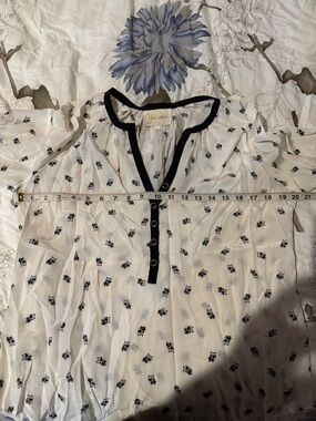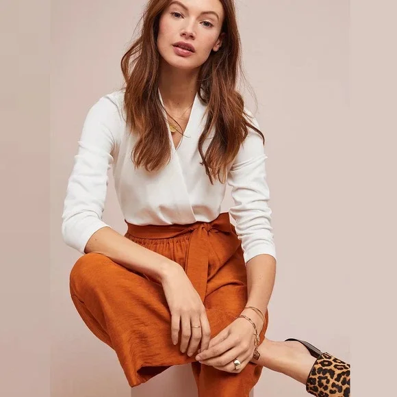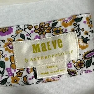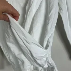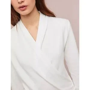 Anthropologie Maeve White Faux Wrap Curran Long Sleeve Top in Women's Size XS. Made in Turkey. 92% cotton and 8% nylon. Machine washable. OB943182. Great pre-owned condition. Please review all photos.