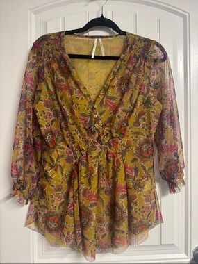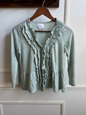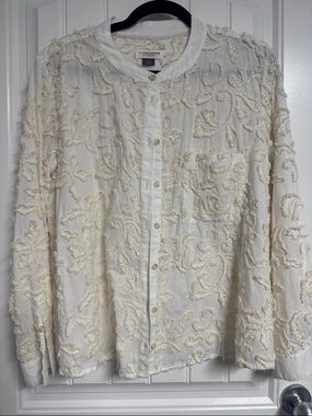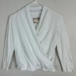 Anthropologie Maeve Curran White Long Sleeve Top Womens Size XS Faux Wrap Boho